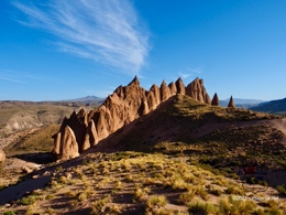 Nebst einer tiefen Schlucht und bizarren Gesteinsformationen erwarten uns vulkanisch aktive Sehenswürdigkeiten. So besuchen wir Geysire, die siedend heißes Wasser spucken und baden in Tümpeln, die mit warmem Thermalwasser gefüllt sind. Wir entdecken Flamingos, welche in kleinen Teichen nach Futter stochern und bewundern kreisende Kondore die in den Aufwinden stundenlang auch nur ohne einen einzigen Flügelschlag dahin schweben. Nicht nur die Sonne begleitet uns bei dieser Tour, auch erleben wir ein schlimmes Gewitter mit Blitz, Donner und Hagelschlag.