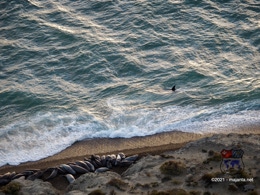 Eigentlich wollten wir im März noch den Süden der Provinz Mendoza bereisen, aber dafür haben wir keine Zeit mehr. Jan und ich entschliessen uns für den großen Sprung zum Atlantik um Killerwale zu beobachten. Man sagt uns, die Zeit von Mitte März bis Anfang April sei die beste für dieses Vorhaben. So kommen wir nach 2 Tagen Fahrt am Abend des 21. März an unserem einsamen und abgelegenen Ziel in Punta Ninfas an. Punta Ninfas liegt an der Spitze einer Landzunge, welche rundum ca. 60 Meter steil zur Küste abfällt.