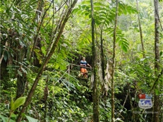 Uns zieht es weiter nordwärts und so erreichen wir die Stadt Ibagué, von wo der beeindruckende Cañón del Combeima ins Gebirge abzweigt. Über eine uns nicht sehr vertrauenswürdig wirkende kleine Gondel schweben wir über den Canyon, um von dort zum ca. 150 Meter tiefer liegenden Río Combeima hinabzusteigen. Wie schon in Mocoa am Fin del mundo hüpft auch hier unser Hund freiwillig und sehr gerne in die Kabine und geniesst die Fahrt über die tiefe Schlucht.