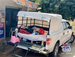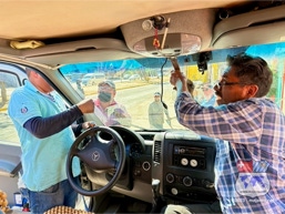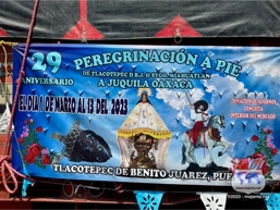 Am nächsten Tag kommt zu Fuss eine grössere Gruppe Wallfahrer an um sich zu stärken. Die Wanderer werden von drei PickUps begleitet, auf deren Ladeflächen die Modelle der Kirche von Juquila errichtet sind. Die Pilger kommen aus dem Staat Puebla und sind schon 10 Tage unterwegs. Sie werden noch 3 weitere Tage bis zur Ankunft in Juquila brauchen. Juquila? Was ist dort? In Santa Catarina Juquila steht die Wallfahrtskirche zu Ehren der heiligen Jungfrau und diese ist ihr Ziel. Wir wünschen den weiterziehenden Wallfahrern alles Gute, geben ihnen wie hier üblich Gottes Segen mit auf ihren Weg und überholen sie letztendlich freundlich hupend auf unserer Weiterfahrt. Danach kommen wir an weiteren Begleitfahrzeugen dieser Pilger-Gruppe vorbei, nämlich an Lastwagen deren Ladeflächen als Übernachtungsplatz für die Gläubigen dienen. Wir staunen über die gute Organisation der Wallfahrer.