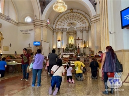 Santa Catarina Juquila liegt auf unserer Route zum Pazifik und so beschliessen wir ebenfalls die „Iglesia de la Virgen de Juquila“ zu unserem Ziel zu machen. Rund um die Kirche gibt es unzählige Verkaufsstände, welche Heiligen-Figuren, Rosenkränze und allerhand anderes Zeugs anbieten. Hier wird mit dem Glauben ein gutes Geschäft gemacht, so denken wir. Ausserdem gibt es lange Absperrungen zur Marien-Kapelle, in der man Kerzen entzünden kann. Es scheint wohl an manchen Tagen hier mächtig was los zu sein. Möchte man dann eine Kerze stiften, muss man viel Geduld mitbringen.