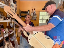Auch sehr schön, aber (noch) kein Pueblo Mágico ist das Dorf Paracho de Verduzco. Dieses Bergdorf ist vor allem für seine vielzähligen Saiten-Instrumentenbauer bekannt. Schlendert man durch die Strassen Parachos, folgt ein Gitarrenladen dem nächsten. Wir gehen in die Geschäfte und lassen uns von einem älteren Herrn sein Handwerk erklären. Dabei sind wir zwar keine Spezialisten im Gitarrenbau geworden, aber wir erkennen jetzt den kleinen Unterschied ob eine Gitarre kommerziell hergestellt wurde oder handgefertigt ist.