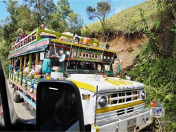 Aufgrund der nassen Witterungsverhältnisse sind die unbefestigten Strassen entlang der steilen Berghänge häufig von Erdrutschen begleitet. Ein Grund mehr stets vor Antritt der Fahrt die Einheimischen zu fragen, ob die geplante Route überhaupt befahrbar ist. So kam es zufällig zu nachstehender Geschichte: