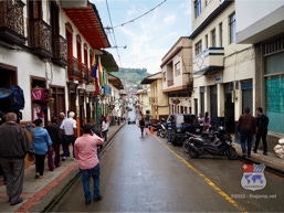 Nirgends sonst in Südamerika wird das Dorfbild dermassen von der spanischen Kolonialzeit bestimmt, wie hier in Kolumbien. Unsere Fahrt quer durch die zona cafetera entwickelt sich zu einem wahren Schaulaufen spanischer Baukunst. Die mit grossen Bäumen bestückte plaza central befindet sich meist inmitten eines jeden Dorfes und wird umrahmt von alten Gebäuden mit buntbemalten Balkonen.
