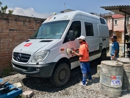Der Finca-Chef Hans kennt viele gute Handwerker in der Stadt Ibarra und so lassen wir die Karosserie unseres Sprinters wieder auf Vordermann bringen. Ein Chapista behandelt sämtliche Rostflecken (welche tatsächlich nur geringfügig ausfallen), entfernt eine Beule und poliert den Lack auf Hochglanz. Unser Indi sieht aus wie neu.