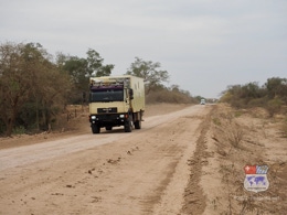 Die Trans-Chaco, welche Paraguay mit Bolivien verbindet, ist geteert, hat aber teilweise tiefe Schlaglöcher. Die Fahrt verlangt äusserste Konzentration vom Fahrer. Der Trans-Chaco wird aktuell zu einer Autobahn ausgebaut, das bedeutet dass wir häufig durch Baustellen fahren und teilweise sehr staubige Ausweichstrassen nehmen müssen. Bei der Kleinstadt Mariscal Estigarribia verlassen wir den Trans-Chaco nordwärts und sind ab hier weitere 350 Kilometer auf Erdstrassen unterwegs. Tags zuvor hat es noch etwas geregnet. Das Gute, es staubt nicht so arg. Das Schlechte, ist der Matsch der uns das Reifenprofil füllt und wir wie auf Eis dahin schlittern. Da heisst es dann aufpassen, dass einen das Hinterteil nicht überholt. Aber mit einem routinierten Fahrer am Steuerrad meistern wir diese Passagen ohne Probleme.