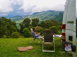 Am nächsten Morgen, kaum wieder auf der Route gen Süden, sehen wir im Rückspiegel unerwartet ein Wohnmobil mit deutschem Kennzeichen. Was für eine Überraschung nach so vielen Wochen endlich mal wieder Overlander zu treffen. Rechten Blinker setzen und anhalten. Wir lernen Claudia und Achim aus Oberbayern kennen. Wir verstehen uns auf Anhieb prima und verratschen uns am Strassenrand für ganze 2 Stunden. Die beiden waren früher schon mit Motorrad in Südamerika und sind jetzt seit 4 Wochen mit dem Wohnmobil in Kolumbien. Wir werden Claudia und Achim bei Hans in der Finca Sommerwind wieder treffen und einige gesellige Stunden miteinander verbringen.