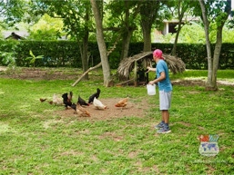 Als uns der sympathische Albeiro das Tor zu seinem Garten öffnet, machen wir uns ernsthaft Sorgen um die zwei Katzen und die vielen Hühner die hier frei herumlaufen. Keine Ahnung ob die Haustiere unsere Banda überleben werden. Schliesslich ist sie bekannt für Ihren ausgeprägten Jagdinstinkt, also behalten wir unsere Hündin sicherheitshalber an der langen Leine. Albeiro und seiner Frau Gloria, die selbst 3 Hunde besitzen, gefällt dies jedoch gar nicht. Wir sollen Banda bitte frei lassen. Dass sie den Hühnern und Katzen nichts tun darf, das wird sie schnell lernen. Jan und ich zweifeln, lassen aber unseren Hund nun in der grosszügigen Gartenanlage frei laufen. Und tatsächlich, mit jedem lauten „NEIN“ beim angedeuteten Anlauf auf die Viecher lernt Banda, dass es verboten ist Jagd auf Huhn und Katze zu machen. Letztendlich begnügt sie sich mit der Jagd auf kleine Eidechsen zwischen den Holzstapeln. Die neue Hühnerliebe geht sogar so weit, wenn Albeiro mit dem Kübel voll Hühnerfutter laut „putt putt putt“ rufend über den Rasen kommt, tut unsere verfressene Banda so als wäre sie ein Huhn, mischt sich unter das hungrige Federvieh und hofft ein paar Maiskörner abzubekommen.