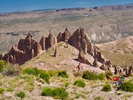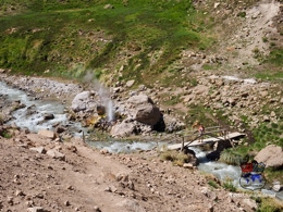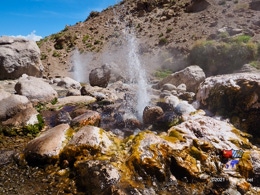 Nebst einer tiefen Schlucht und bizarren Gesteinsformationen erwarten uns vulkanisch aktive Sehenswürdigkeiten. So besuchen wir Geysire, die siedend heißes Wasser spucken und baden in Tümpeln, die mit warmem Thermalwasser gefüllt sind. Wir entdecken Flamingos, welche in kleinen Teichen nach Futter stochern und bewundern kreisende Kondore die in den Aufwinden stundenlang auch nur ohne einen einzigen Flügelschlag dahin schweben. Nicht nur die Sonne begleitet uns bei dieser Tour, auch erleben wir ein schlimmes Gewitter mit Blitz, Donner und Hagelschlag.