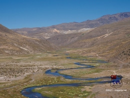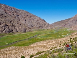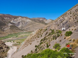 Bei den Lagunas Varvarco fragen wir die Herrschaften der Guardafauna nochmal nach der Machbarkeit der Route 53 nach Barrancas. Auch sie raten uns eher davon ab diese unbefestigte Strasse zu nehmen. Aber Jan und ich wollen ja Abenteuer erleben und darum machen wir uns dennoch auf den Weg. Die Personen der Guardafauna bitten uns vorsichtshalber um eine WhatsApp-Nachricht wenn wir in Barrancas ankommen. Sie möchten sicher stellen, dass uns auf der Strecke nichts passiert ist. „Das werden wir machen“ versprechen wir und rollen los. Auf dieser Strecke ist alles dabei: steile Hänge, Flussdurchquerungen, grobes Geröll, tiefe Furchen, sumpfiges Grünland, enge Passagen aufgrund Felssturz, weicher Sand, rutschiger Kies, enge Serpentinen, ... kurzum, alles was dem Abenteurer gefällt. Die unberührte und malerische Berglandschaft die es rundum zu bewundern gibt, macht diese Route zu einem echten Geheimtipp für Overlander. Letztendlich sind wir 8 Tage rund um den Vulkan Domuyo unterwegs und wir können am Ende wieder mal sagen „geht nicht, gibt‘s nicht“!
