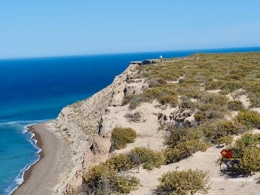 Eigentlich wollten wir im März noch den Süden der Provinz Mendoza bereisen, aber dafür haben wir keine Zeit mehr. Jan und ich entschliessen uns für den großen Sprung zum Atlantik um Killerwale zu beobachten. Man sagt uns, die Zeit von Mitte März bis Anfang April sei die beste für dieses Vorhaben. So kommen wir nach 2 Tagen Fahrt am Abend des 21. März an unserem einsamen und abgelegenen Ziel in Punta Ninfas an. Punta Ninfas liegt an der Spitze einer Landzunge, welche rundum ca. 60 Meter steil zur Küste abfällt.
