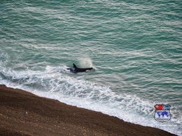 Wir müssen also Geduld haben und warten, warten, warten... ganze 7 Tage warten und beobachten wir das Meer, bis wir am Palmsonntagmorgen endlich einen Orca sichten, der ganz nahe an die Robben heran schwimmt. Wow, was für ein Erlebnis. Wir sind ganz aufgeregt. Mehrmals versucht das riesige Tier eine Robbe zu erbeuten, aber er hat kein Glück. Anscheinend ist der Einsame ein junges Männchen das Hunger hat. Üblicherweise jagen Orcas im Verbund von mehreren, um der Beute erst den Weg abzuschneiden und dann zu fangen. Am Dienstag haben wir erneut Glück und können eine Gruppe von vier Killerwalen beobachten. Da zur Wochenmitte ein Wetterumschwung erwartet wird mit Kälte, Wind und Regen, entschließen wir uns nach einem letzten whale watching am Mittwochmittag abzureisen. Der Mittwoch wird dann noch unser Glückstag. Kaum treten wir am Morgen aus dem Indi, schwimmen bereits die ersten zwei Schwertwale (quasi vor unserer Haustüre) vorbei. Eine Stunde später sehen wir von unserem Aussichtspunkt eine Gruppe von sogar 5 Orcas! Der Wahnsinn!!! Wir können‘s gar nicht fassen. Bei abnehmender Flut gehen wir zurück zum Indi und machen Frühstück. Uns ist beiden aufgefallen, dass die große Robbenkolonie gar nicht mehr so groß ist und nicht mal mehr aus 40 Tieren besteht. Ob die verschwundenen Robben wohl von Orcas gefressen wurden? Während wir unsere Vermutungen diskutieren und aus dem Fenster blicken, trauen wir unseren Augen nicht: Zwei weitere Killerwale tummeln sich vor uns im Meer. Was für ein Tag. Nie hätten wir damit gerechnet so häufig und so viele Orcas zu sehen. Als wir am Mittag Punta Ninfas in Richtung Puerto Madryn verlassen, sind wir überglücklich.
