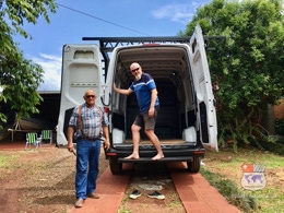 Anderen Tags kommen Romy und Osvald mit ganz anderen Aufgaben zu uns. Während Romy mit ihrer Nähmaschine unsere Kissenbezüge auf die richtige Grösse umnäht, misst Jan mit Osvald unseren Sprinter aus. Osvald hat sich nämlich kürzlich (inspiriert durch unseren Indi) einen nigelnagelneuen Sprinter gekauft und möchte diesen möglichst schnell zum Wohnmobil ausbauen. Unser Indi dient ihm als Vorlage, denn nie zuvor habe Osvald einen besseren Kastenwagenausbau gesehen.