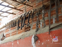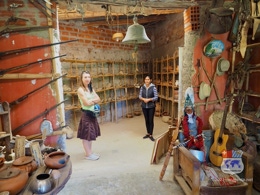 Im Anschluss an die Weinprobe dürfen wir noch einen Blick in das „Museum“ des Weingutes werfen. Es scheint für uns eher ein Sammelsurium aus allen möglichen nicht mehr gebrauchten Sachen zu sein. Da stehen alte Schreibmaschinen und Kochtöpfe, hängen alte Felle und eine Schlangenhaut, liegen verrostete Werkzeuge und Schallplattenspieler. Alles mögliche wird hier gesammelt. Der Inhaber scheint ein Messie mit Ordnungssinn zu sein. Wir finden diese Ausstellung in jedem Fall lustig.