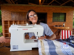 Verena vermittelt auch den Verkauf von Handarbeitskunst.