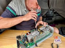 Wir haben im Kofferraum ein elektrisches Gerät, das aus 12 Volt 230 Volt machen kann. So ist es möglich, dass wir im Fahrzeug gewöhnliche Haushaltsgeräte an die Steckdose anschliessen und benutzen können. Egal ob für den Staubsauger, den Mixstab, die Bohrmaschine oder die Aufladung unseres Computers… 230 Volt im Auto zu haben ist für uns wichtig. Umso schlimmer als plötzlich der im Kofferraum montierte Stromkonverter nicht mehr funktioniert. Er piepst zwar noch beim Einschalten und ein schwaches Lichtlein flackert, aber er liefert einfach keinen Strom mehr. Auf die Schnelle einen neuen Konverter zu finden ist beinah unmöglich, da nur wenige Länder auf dem amerikanischen Kontinent 230 Volt als Standard haben (nicht Kolumbien). Hier läuft alles auf 110 Volt und da liegt unser Problem. Wir spielen schon mit dem Gedanken einen 110 Volt-Konverter zu kaufen und die 230 Volt-Geräte aus dem Auto rauszuschmeissen, als wir von unserem Freund Heinz aus Gachetá eine grosse Hilfestellung bekommen. Er kennt einen Mann, der die Rettung unseres Problems sein könnte und gibt uns den Kontakt. So lernen wir José Luis kennen, der Spezialist für Fragen der Elektrik. Er nimmt unser Gerät mit und wird schauen ob er es reparieren kann. Für uns äusserst überraschend aber doch sehr erfreulich als die Nachricht kommt, er hat den Fehler gefunden und kann es reparieren. Es fehle ihm nur noch ein Ersatzteil, genauer ein Transistor den er austauschen muss, dann sei der Stromwandler wieder wie neu. Weitere 2 Tage später treffen wir uns erneut mit José Luis, der uns fröhlich den reparierten Konverter überreicht und gleich noch hilft ihn im Kofferraum einzubauen. Dann der grosse Moment, wird er tatsächlich funktionieren? Wir schalten ihn ein und hängen den Stabmixer dran. HURRA, er läuft!!! Grossartig! Wir sind überglücklich! José Luis ist unser Held des Monats November. Auf diesem Weg nochmal herzlichen Dank an Heinz für den erstklassigen Kontakt und an José Luis für die tadellose Reparatur.