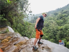 Uns zieht es weiter nordwärts und so erreichen wir die Stadt Ibagué, von wo der beeindruckende Cañón del Combeima ins Gebirge abzweigt. Über eine uns nicht sehr vertrauenswürdig wirkende kleine Gondel schweben wir über den Canyon, um von dort zum ca. 150 Meter tiefer liegenden Río Combeima hinabzusteigen. Wie schon in Mocoa am Fin del mundo hüpft auch hier unser Hund freiwillig und sehr gerne in die Kabine und geniesst die Fahrt über die tiefe Schlucht.