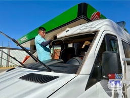 Zwei Tage später der Wasser-Test. Das Ergebnis? Die Scheibe ist undicht. Von oben läuft das Wasser ungehindert in das Cockpit unseres Sprinters und ich habe alle Hände voll zu tun es mit einem Lappen aufzufangen. Also ein zweites Mal fahren wir zum (angeblichen) Spezialisten für Frontscheiben und reklamieren. Nur Pech, dass es bereits Samstagmittag ist und wir erst am Montag bedient werden.