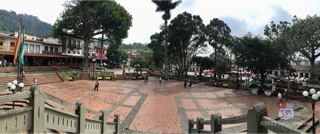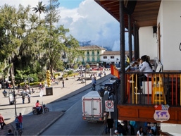 Nirgends sonst in Südamerika wird das Dorfbild dermassen von der spanischen Kolonialzeit bestimmt, wie hier in Kolumbien. Unsere Fahrt quer durch die zona cafetera entwickelt sich zu einem wahren Schaulaufen spanischer Baukunst. Die mit grossen Bäumen bestückte plaza central befindet sich meist inmitten eines jeden Dorfes und wird umrahmt von alten Gebäuden mit buntbemalten Balkonen.