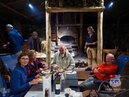 Wir geniessen das Beisammensein bei einem guten Glas Wein, am wärmenden Feuer und in der Runde mit gleichgesinnten Reisenden. (Foto: Andrea Beyer)