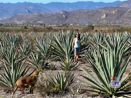 Die Agaven-Pflanze wird grossflächig im zentralen Hochland Mexikos angebaut. Für die Reife, bzw. den Wachstum benötigt sie um die 10 Jahre. Bei der Ernte werden die langen „Blätter“ entfernt und es bleibt das Fruchtherz übrig, aus dem letztendlich der Mezcal gebrannt wird. Das Herz kann zwischen 40-70 Kilo wiegen. Um 1 Liter reinen Mezcal zu brennen braucht es nach Aussage der Agaven-Bauern 7-10 kg vom Agaven-Herz (welches wg. seines Ananas-ähnlichen Aussehens auch „Piña“ genannt wird).