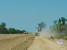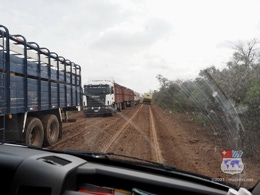 Die Trans-Chaco, welche Paraguay mit Bolivien verbindet, ist geteert, hat aber teilweise tiefe Schlaglöcher. Die Fahrt verlangt äusserste Konzentration vom Fahrer. Der Trans-Chaco wird aktuell zu einer Autobahn ausgebaut, das bedeutet dass wir häufig durch Baustellen fahren und teilweise sehr staubige Ausweichstrassen nehmen müssen. Bei der Kleinstadt Mariscal Estigarribia verlassen wir den Trans-Chaco nordwärts und sind ab hier weitere 350 Kilometer auf Erdstrassen unterwegs. Tags zuvor hat es noch etwas geregnet. Das Gute, es staubt nicht so arg. Das Schlechte, ist der Matsch der uns das Reifenprofil füllt und wir wie auf Eis dahin schlittern. Da heisst es dann aufpassen, dass einen das Hinterteil nicht überholt. Aber mit einem routinierten Fahrer am Steuerrad meistern wir diese Passagen ohne Probleme.