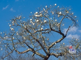Nicht zu übersehen und auffallend schön sind die unzähligen Florettseidenbäume. Sie gelten als Wahrzeichen des Chaco und werden von den Paraguayer Samu’ú genannt. Der oft flaschenförmige Stamm des Baumes ist innen faserig und kann für die Trockenzeit sehr viel Wasser speichern. Der lustigen Stammform hat der Flaschenbaum seinen spanischen Trivialname Palo borracho zu verdanken, was so viel bedeutet wie „betrunkener Baum“. Seine rosafarbenen Blüten verkapseln sich zu faustgrossen birnenförmigen Früchten. Wenn sie reif sind platzen sie auf und weisse seidige Fasern quellen heraus. In denen stecken wiederum die Samen, die durch den Wind in der Natur verteilt werden.